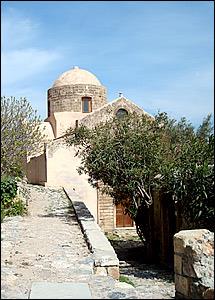 - Άγιος Νικόλαος (φωτό): Σταυροειδής με τρούλο –στα πρότυπα της Αγίας Σοφίας της Κωνσταντινούπολης– κτίστηκε το 1703 αλλά, κατά παράδοξη συγκυρία, δεν λειτούργησε ποτέ ως εκκλησία. Στέγασε, όμως, διαδοχικά ένα οπλοστάσιο, ένα αλληλοδιδακτικό σχολείο επί Καποδίστρια, και τέλος ένα δημοτικό σχολείο, στο οποίο μαθήτευσε και ο Γιάννης Ρίτσος.
