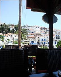 Εξαίσιες, σπιτικές πίττες και παραδοσιακά μαγειρευτά με ολίγο από δημιουργικό twist (βλέπε κοκκινιστό μοσχαράκι με μανιτάρια και πουρέ πατάτας) θα δοκιμάσετε στα Σκαλάκια (φωτό, αεριστερά), στη Χώρα. Υπολογίστε περίπου 20-25€ το άτομο.