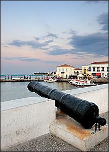Οι βόλτες ξεκινούν πάντα από την Ντάπια, το νέο λιμάνι, που πήρε το όνομά του από την τουρκική λέξη για το κανονιοστάσιο. Επιβλητικά καπετανόσπιτα, τα χαρακτηριστικά αρχοντικά του νησιού, πλαισιώνουν τις λιθόστρωτες διαδρομές που ξεκινούν από εδώ και ακολουθούν την παραλιακή περαντζάδα προς την Κοργιαλένειο Σχολή και το παλιό λιμάνι. Περίτεχνα κιγκλιδώματα προστατεύουν τα παράθυρά τους, κόκκινες κεραμιδένιες στέγες προεξέχουν για να σκεπάσουν τις ψηλές προσόψεις τους, στενές πετρόχτιστες σκάλες οδηγούν στην κύρια είσοδό τους –καθότι κάποτε τα κύματα της θάλασσας χάιδευαν τους τοίχους αυτούς, ελλείψει παραλιακού δρόμου, και η είσοδος στα σπίτια πραγματοποιούταν απευθείας από τις βάρκες.