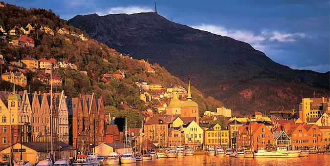 Περιτριγυρισμένη από τους επιβλητικούς λόφους και τα σκανδιναβικά φιόρδ, η δεύτερη μεγαλύτερη πόλη της Νορβηγίας εντυπωσιάζει με τα χρωματιστά ξύλινα σπιτάκια με τις μυτερές οροφές, ενώ πέρα από την εξερεύνηση του ιστορικού κέντρου, προσφέρεται και για χειμερινά σπορ στις χιονισμένες πλαγιές γύρω της. Η συγκλονιστική θέα προς τους επτά λόφους και τα ισάριθμα φιόρδ της πόλης απολαμβάνεται ιδανικά από την ρομαντική διαδρομή με το τελεφερίκ, ενώ οι βόλτες ξεκινούν από το πολύβουο λιμάνι και συνεχίζονται ως το Bryggen και τους δρόμους με τα γραφικά σπιτάκια που ανεβαίνουν ως ψηλά.