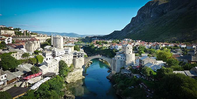 Το όνομα της μικρής βοσνιακής πόλης σημαίνει γέφυρα, βάφτιση που φυσικά παραπέμπει στην μεγάλη επιβλητική γέφυρα που χτίστηκε το 1556, αλλά και στα μικρότερα γεφυράκια που στολίζουν διάσπαρτα το πανέμορφο ιστορικό κέντρο με τα (απαραίτητα σε κάθε ιστορικό κέντρο με την σφραγίδα της UNESCO) πλακόστρωτα δρομάκια, τα πέτρινα κτίρια και τα ιστορικά τζαμιά οι μιναρέδες των οποίων μετρούν πολλούς αιώνες. Ένα ποτάμι χωρίζει την πόλη στα δύο, ενώ οι κατάφυτες βουνοπλαγιές τριγύρω ολοκληρώνουν το ωραιότερο σκηνικό στην «πρωτεύουσα» της Ερζεγοβίνης.
