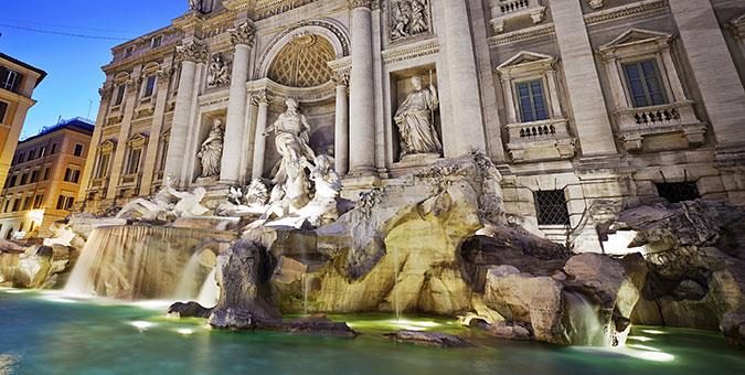 *Fontana di Trevi «Κρήνη στους τρεις δρόμους» σημαίνει το όνομα του διασημότερου σιντριβανιού του κόσμου, που χτίστηκε σύμφωνα με το έθιμο των Ρωμαίων, να στήνουν μια όμορφη κρήνη εκεί που τελειώνει κάθε υδραγωγείο. Εδώ λοιπόν έφτανε το υδραγωγείο που… πότιζε τη Ρώμη στα χρόνια της Αναγέννησης, εποχή που χτίστηκε και το τεράστιο αυτό σιντριβάνι με τα γλυπτά του Ποσειδώνα και του Τρίτωνα. Το πιο… τουριστικό έθιμο θέλει όποιον πετά ένα νόμισμα στο σιντριβάνι να επιστρέφει στη Ρώμη. Αξίζει να περάσετε από εκεί το βράδυ, όταν ο ατμοσφαιρικός φωτισμός κάνει την Φοντάνα ακόμη πιο φαντασμαγορική.
