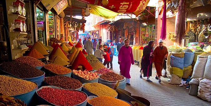 Γεύσεις από Μαρακές: Για απολαυστικές παραδοσιακές νοστιμιές (μη χάσετε το κους κους με κοτόπουλο, ρεβίθια, καρότα και καραμελωμένα κρεμμύδια) θα πιάσετε τραπεζάκι στην καταπράσινη αυλή του Ryad Jama, που το βράδυ φωτίζεται από κεράκια για έξτρα ρομαντζάδα. Εξίσου ρομαντική –και επίσης υπό το φως των κεριών– είναι και η ταράτσα του Terrace des Epices, στην οποία σερβίρεται πειραγμένη μεσογειακή κουζίνα, με γαλλικές επιρροές.