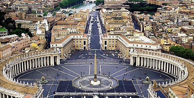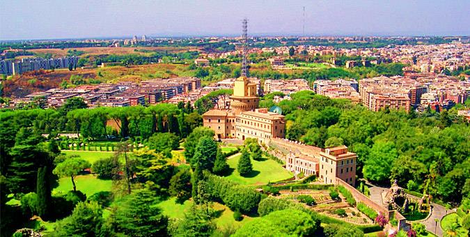 Το Βατικανό με μια ματιά Ιδρυμένο το 1929, το κρατίδιο του Βατικανό αποτέλεσε την βάση του Ποντίφικα από τον 14ο αιώνα. Βρίσκεται στη δυτική πλευρά του κέντρου της Ρώμης, πάνω στον λόφο του Βατικανού, και τα νοητά σύνορά του ορίζουν ένα τρίγωνο, τα τείχη του οποίου περικλείουν την πλατεία του Αγίου Πέτρου με την ομώνυμη Βασιλική, την κατοικία του Πάπα, το σύμπλεγμα των Μουσείων του Βατικανού, το Κυβερνητικό Μέγαρο και άλλα κτίρια διοικητικού χαρακτήρα (τράπεζες, βιβλιοθήκη, ακαδημία Επιστημών, ταχυδρομείο, Κολλέγιο κλπ), την Έπαυλη Μπελβεντέρε, αρκετά ακόμη εξωκκλήσια και τους Παπικούς Κήπους.