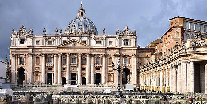 Η Βασιλική του Αγίου Πέτρου Χτισμένη στο μέρος όπου βρίσκεται ο τάφος του Αποστόλου Πέτρου, της «Πέτρας της Καθολικής εκκλησίας» και πρώτου επισκόπου της Ρώμης, η πιο διάσημη Βασιλική του κόσμου σχεδιάστηκε από τα «ιερά τέρατα» της Αναγεννησιακής Αρχιτεκτονικής, τον Bramante, τον Μιχαήλ Άγγελο, τον Maderno και τον Bernini. Η εκπληκτική Pieta του Μιχαήλ Άγγελου, οι περίτεχνοι τάφοι στα ξωκλήσια εντός του ναού, οι πύργοι με τα ρολόγια και φυσικά η εξωπραγματική θέα από τον τρούλο της Βασιλικής είναι μερικοί από τους λόγους που αξίζει να περιμένετε στην ουρά για να μπείτε στο ναό.