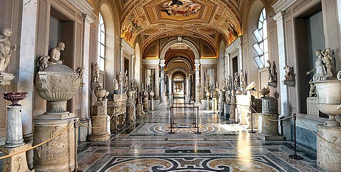 Ξεκινώντας από τις σπειροειδείς σκάλες στην είσοδο του Μουσείου, θα βρεθείτε διαδοχικά σε 54 αίθουσες διαφόρων θεματικών. Μην χάσετε την Πινακοθήκη του Βατικανού, όπου θα δείτε έργα του Τζιότο, του Ραφαήλ, του Ντα Βίντσι και του Καραβάτζιο, την Συλλογή Μοντέρνας Θρησκευτικής Τέχνης, με έργα όπως αυτά των Καρά και Ντε Κίρικο, τα Μουσεία Γλυπτικής, γύρω από το Belvedere (περιλαμβάνονται τα Μουσεία των Πίου-Κλεμεντίνου, Κιαραμόντι και Γρηγοριανού, όπου θα δείτε έργα αρχαιοελληνικής, ρωμαϊκής και ετρουσκικής γλυπτικής), το Μουσείο Ιστορίας του Βατικανού και τα διάσπαρτα έργα στις διαδοχικές αίθουσες, με αποκορύφωμα την τελευταία και καλύτερη αίθουσα (galleria) της διαδρομής, την περίφημη Καπέλα Σιξτίνα.