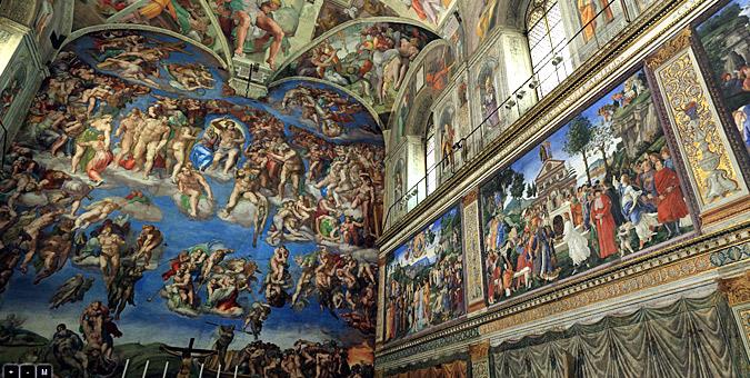 Πρόκειται για παρεκκλήσι του Αποστολικού Παλατιού, του οποίου εμπνευστής υπήρξε ο Πάπας Σίξτος Δ’ (εξ ου και η ονομασία του). Η διακόσμησή του αποτελεί αναφορά στον Ναό της Παλαιάς Διαθήκης και είναι ένα πελώριο έκθεμα με αριστουργήματα προς οποιαδήποτε πλευρά του κι αν κοιτάξει κανείς, καθώς οι τοιχογραφίες του, η αρχιτεκτονική του, οι νωπογραφίες, οι οροφές του είναι φιλοτεχνημένες από τους μεγαλύτερους «μάστορες» της Αναγέννησης. Ο νότιος τοίχος εικονίζει την ιστορία του Μωυσή, διά χειρός Perugino, Botticelli, Rosselli, Ghirlandaio, Tucci, di Cosimo, Signorelli και della Gatta. Ο βόρειος τοίχος εικονίζει την πορεία του Ιησού, από την Βάπτιση ως το Μυστικό Δείπνο, ενώ το κυρίως αξιοθέατο είναι η αψιδωτή οροφή, όπου δεσπόζει η μεγαλύτερη «οροφογραφία» του Μιχαήλ Αγγέλου, η τρομακτική, αλλά αριστουργηματική «Ημέρα της Κρίσης». Φυσικά, το «προσκύνημα» στην «Δημιουργία του Ανθρώπου», το γνωστό έργο του Μιχαήλ Αγγέλου με το άγγιγμα θεού-ανθρώπου βρίσκεται στο ίδιο παρεκκλήσι.