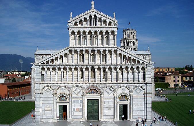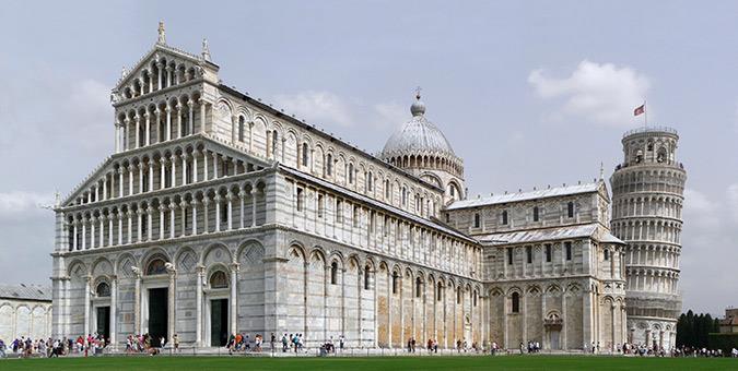 -Duomo: Ο καθεδρικός ναός της Πίζας κόβει την ανάσα όχι μόνο χάρη στο μέγεθός του, αλλά και στην αρχιτεκτονική πρωτοπορία του – ήταν η πρώτη εφαρμογή των εναλλασσόμενων «ράβδων» λευκού και γκρίζου μαρμάρου στην εξωτερική όψη του, στιλ που βρήκε χιλιάδες μιμητές ανά τον κόσμο στη συνέχεια. Ο δέκα αιώνων ναός που είναι αφιερωμένος στην Κοίμηση της Θεοτόκου εντυπωσιάζει και στο εσωτερικό του, χάρη στην ξυλόγλυπτη οροφή, τον σκαλιστό άμβωνα διά χειρός Giovanni Pisano, τα περίτεχνα ψηφιδωτά, καθώς και την λάμπα του Γαλιλαίου, εκείνη που η ιδιοφυΐα του 16ου αιώνα παρατήρησε και εντόπισε τους κανόνες της κίνησης ενός εκκρεμούς.