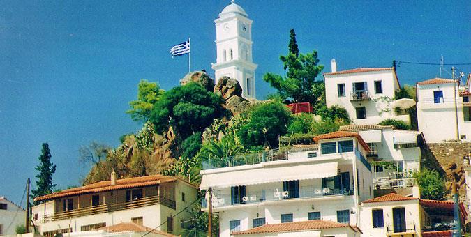 *Το Ρολόι Τα σοκάκια της πόλης «σκαρφαλώνουν» τον λόφο και οδηγούν στην κορυφή του, εκεί όπου δεσπόζει το έμβλημα του νησιού, το παλιό Ρολόι. Εδώ θα επιστρέφετε και τα απογεύματα, για να αντικρίζετε το ρομαντικό ηλιοβασίλεμα και να ατενίζετε τον ήλιο να βουτά στα νερά του Σαρωνικού.