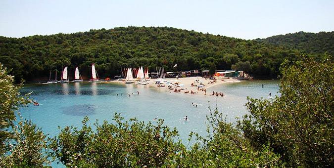 Καραβοστάσι Πού; 22 χιλιόμετρα νότια από τα Σύβοτα Ακόμα και αν δεν έχετε βουτήξει ποτέ στα ανοιχτογάλαζα νερά της, την θυμάστε από τη θρυλική διαφήμιση του Nescafe με τα άλογα. Είναι εκείνη η τεράστια παραλία που συνδυάζει χρυσαφένια άμμο και πολύχρωμα βότσαλα. Τα παγωμένα νερά του ποταμού Παραμυθιώτη καταλήγουν στην θάλασσα, χωρίζοντας την παραλία στα δύο, ενώ αν ακολουθήσετε το μονοπάτι μέσα από το φουντωτό πευκοδάσος που την πλαισιώνει θα βρεθείτε στον αρχαιολογικό χώρο του Δυμόκαστρου, για να απολαύσετε την πανοραμική θέα στο απέραντο τιρκουάζ του Ιονίου.