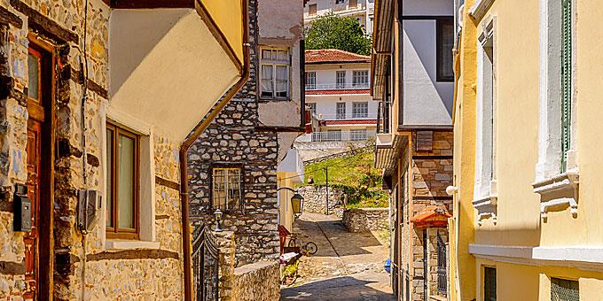 Η παλιά πόλη της Καστοριάς είναι –όπως εύκολα θα μάντευε κανείς– η πιο αρχοντική από τις γειτονιές της. Ξεκινά από τον παραλιακό δρόμο στη νότια πλευρά της πόλης, και ανηφορίζει κάνοντας ζιγκ-ζαγκ σε λιθόκτιστα καλντερίμια στολισμένα με τα παλιά της αρχοντικά και τα κουκλίστικα εκείνα σπιτάκια με τα χαγιάτια τους, που στηρίζονται σε ξύλινα δοκάρια, όπως επιτάσσει η παραδοσιακή μακεδονίτικη αρχιτεκτονική.