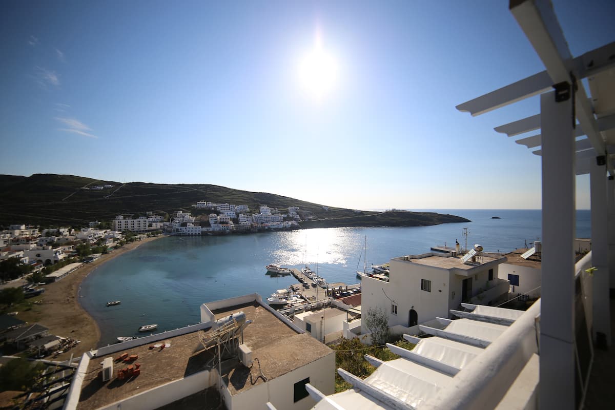 Θα κάνετε τις βουτιές σας την Κολώνα –ιδανική εποχή γιατί στην καρδιά του καλοκαιριού είναι φίσκα στον κόσμο- θα περάσετε μία βόλτα από το σπήλαιο Καταφύκι, θα κάνεις και μια βουτιά στην ιαματική πισίνα των Λουτρών αν είσαι πιασμένος, θα μείνετε και σε αυτό το κατάλευκο σπιτάκι της Σοφίας που βλέπει και Αιγαίο και θα πληρώσετε μόλις 40 ευρώ τη βραδιά.
