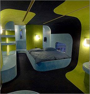Hotel Everland Paris: Το ξενοδοχείο Everland είναι το όνειρο δύο Ελβετών αρχιτεκτόνων -γνωστών για τις προβολές έργων τέχνης τους στο χώρο που προσκαλούν τον παρατηρητή να λάβει μέρος στην τέχνη- που έγινε πραγματικότητα πριν λίγο καιρό. Το πρωτοποριακό της υπόθεσης είναι ότι το Everland αποτελείται ουσιαστικά από ένα μόνο δωμάτιο, με μπάνιο, κρεβάτι king-size και καθιστικό. Το πολυδιάστατο αυτό δωμάτιο αναπαριστά το υποκειμενικό όνειρο κάθε ξενοδοχείου: Την αρχιτεκτονική, της παιχνιδιάρικες λεπτομέρειες καθώς και την επιθυμία να κλέψει κανείς τις υπέροχες χρυσοκέντητες πετσέτες. Όλοι οι επισκέπτες του Everland λαμβάνουν μέρος σε αυτό το project.