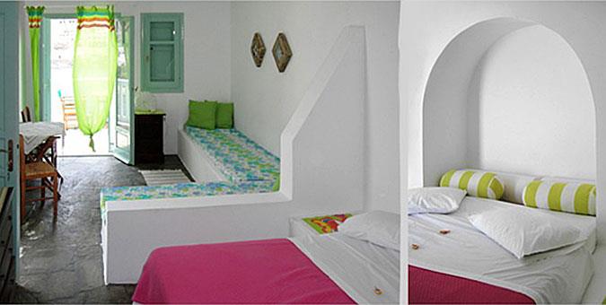 Kontseta Μέριχας, Κύθνος Τιμή: 45€ το δίκλινο με θέα στη θάλασσα Κρατήσεις και μέσω του Booking, από εδώ Παραδοσιακή κυκλαδίτικη αρχιτεκτονική, χτιστά κρεβάτια, ολόλευκοι τοίχοι με καμάρες και πλακόστρωτο δάπεδο χαρακτηρίζουν τα κουκλίστικα δωμάτια του απόλυτα κυκλαδίτικου Kontseta, που απέχει λίγα μόνο βήματα από την παραλία Μαρτινάκια της Κύθνου. Στις παροχές των δωματίων περιλαμβάνονται μικρή κουζίνα και δωρεάν wi-fi, ενώ όλα τα δωμάτια ανοίγουν σε μπαλκονάκια που αγναντεύουν από ψηλά την θάλασσα.
