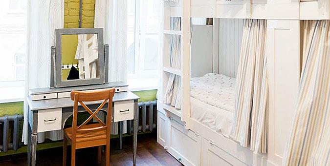 Soul Kitchen Αγία Πετρούπολη, Ρωσία Σε μια από τις ομορφότερες γειτονιές του κέντρου της Αγίας Πετρούπολης, το Soul Kitchen στεγάζεται σε ένα κουκλίστικο μπαρόκ κτίριο 150 ετών. Στις παροχές του περιλαμβάνονται (εκτός από τα συνήθη του τύπου δωρεάν wi-fi, τσάι και καφές όλη την ημέρα) king size κρεβάτια για να απλώνεστε με την άνεσή σας, και δωρεάν τηλεφωνήματα σε 56 χώρες ανά τον κόσμο για να μην χάνετε επαφή με τους γονείς που δεν μπαίνουν internet. Οι τιμές των κρεβατιών κυμαίνονται στα 9-10€.