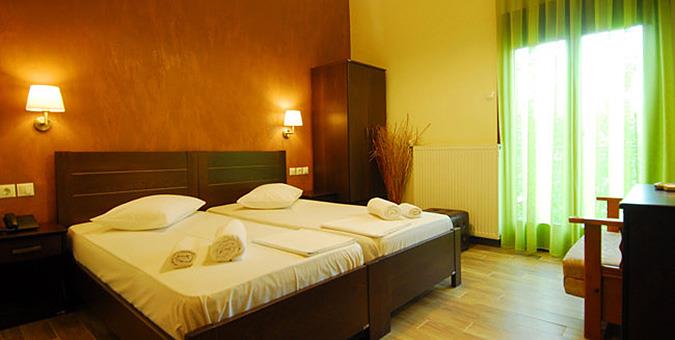 Ερμής, στο Χορευτό Τιμή: 50€ το δίκλινο με πρωινό Κρατήσεις και μέσω του Booking, από εδώ Ακριβώς επάνω στη μεγάλη αμμουδιά του Χορευτού, ο Ερμής προσφέρει ευρύχωρα, καθαρά και περιποιημένα δωμάτια με μπαλκονάκια και εξοπλισμένη κουζίνα για έξτρα οικονομία. Το δυνατό του χαρτί, βέβαια, είναι το γεγονός ότι μπορείτε να κάνετε την πρώτη σας βουτιά στην θάλασσα με το που ξυπνήσετε, μερικά βήματα μακριά από το δωμάτιό σας –εκτός εάν σας βάλει σε πειρασμό το πλούσιο πρωινό που σερβίρεται καθημερινά στον κήπο, κάτω από την σκιά των δέντρων, και χρειαστεί να περιμένετε μερικές ώρες για να χωνέψετε.