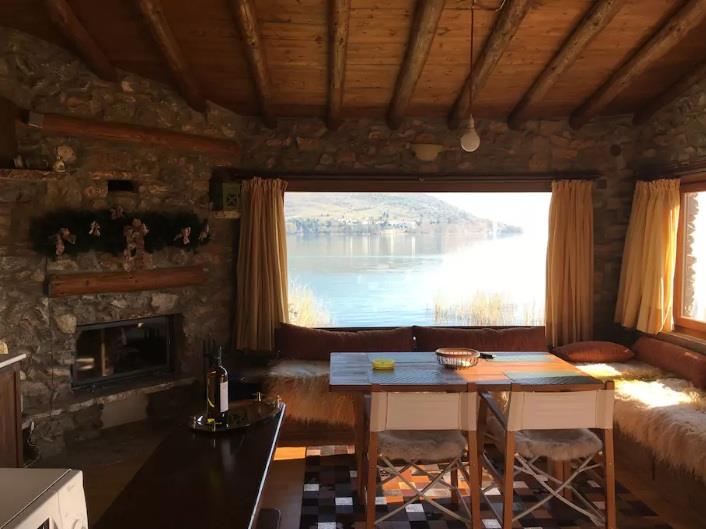…εντάξει, όχι ακριβώς πάνω, βασικά δίπλα στη λίμνη, αλλά τόσο δίπλα που μοιάζει να αιωρείται πάνω από τα ακίνητα νερά της. Φιλοξενεί μέχρι 4 επισκέπτες, με 85€ ανά διανυκτέρευση.