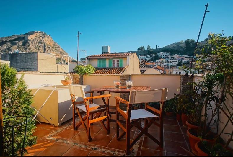 Με το ταρατσάκι της να κοιτάζει κατάματα το Παλαμήδι, στεγάζεται σε ένα υπέροχο παραδοσιακό αρχοντικό (έχει όμως δική της ιδιωτική είσοδο) και φιλοξενεί μέχρι 3 άτομα, με 61€ ανά διανυκτέρευση.