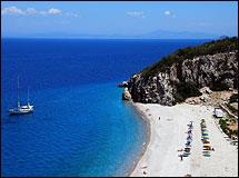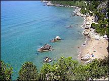 Έχει φτάσει να χαρακτηριστεί η ωραιότερη παραλία της Ευρώπης, και όχι άδικα: απότομοι βράχοι, σκεπασμένοι με πεύκα, που καταλήγουν σχεδόν κάθετα σε μια θάλασσα τόσο διαυγή που μοιάζει καρτ-ποστάλ, αφήνοντας μία στενή λωρίδα ανοιχτόχρωμης άμμου να αναλαμβάνει να φιλοξενήσει τις δεκάδες των επισκεπτών –ελεύθερων κατασκηνωτών, γυμνιστών και μη– που καταφθάνουν κάθε χρόνο. Σε απόσταση 15 χιλιομέτρων από την πόλη της Κέρκυρας, δίπλα ακριβώς στη διάσημη Γλυφάδα, η παραλία έχει πρόσβαση από σχετικά δύσβατο χωματόδρομο –η καλύτερη λύση είναι να αφήσετε το αυτοκίνητο στο πάρκινγκ και να συνεχίσετε με τα πόδια: η απόσταση είναι κάτι λιγότερο από ένα χιλιόμετρο.