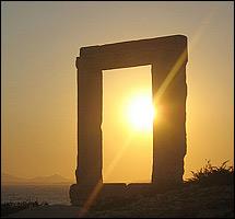 Πίσω στο θέμα μας, όμως. Έτερη διάσημη για το ηλιοβασίλεμά της Κυκλάδα είναι –το μαντέψατε– η Μύκονος, στη Χώρα της οποίας θα σκαρφαλώσετε μέχρι τους ανεμόμυλους για να δείτε τον ήλιο να βάφει τον ορίζοντα και τη θάλασσα πορτοκαλί. Αν νιώσετε την παρόρμηση να τραβήξετε φωτογραφία, κρατήστε την ανάσα σας μέχρι να σας περάσει –πραγματικά, δεν υπάρχει γωνία από την οποία να μην έχει τραβηχτεί ο συνδυασμός ανεμόμυλος- ήλιος, ή φωτογραφία για την οποία να αξίζει να σπαταλήσετε τα ελάχιστα λεπτά του ηλιοβασιλέματος. Και μην ακούσουμε αντιρρήσεις του τύπου «για να το θυμάμαι». Δεν υπάρχει περίπτωση να το ξεχάσετε.  Οι λάτρεις της Ιστορίας, από την άλλη, λατρεύουν τη θέα στο ηλιοβασίλεμα από τη Χώρα της Νάξου, και πιο συγκεκριμένα από την Πορτάρα, στο λοφάκι που υψώνεται πλάι στο λιμάνι, η οποία κορνιζάρει τον ήλιο καθώς αυτός οδεύει προς τη δύση του –προσφέροντας άλλο ένα υπερφωτογραφημένο κάδρο, στο οποίο και πάλι θα χρειαστεί να καταβάλετε προσπάθεια αν αποφασίσετε να αντισταθείτε. Σε περίπτωση που έχετε αμφιβολίες, η Πορτάρα είναι η πύλη του ναού του Απόλλωνα: πού αλλού θα μπορούσε να βρίσκεται η πόρτα του σπιτιού του θεού του φωτός, αν όχι στο σημείο από το οποίο αποχαιρετούν καθημερινά τη Γη οι ακτίνες του ήλιου;