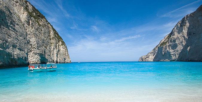 Ναυάγιο, Ζάκυνθος Ίσως η πιο πολυφωτογραφημένη παραλία της Ελλάδας, έχει εξωπραγματικά τιρκουάζ νερά, κατάλευκη άμμο και θεόρατους σχεδόν απόκοσμους βράχους να την περικλείουν. Ξυπνήστε νωρίς, κι ελάτε πριν τις 11.00, για δύο λόγους: πρώτον, για να αποφύγετε την κοσμοσυρροή και δεύτερον για να δείτε τους υπέροχους χρωματισμούς που δημιουργούν οι πρωινές ακτίνες του ήλιου, εκείνους που βλέπετε στις αφίσες των ταξιδιωτικών γραφείων και σκέφτεστε ότι πρέπει να είναι ψηφιακά επεξεργασμένοι. Δεν είναι.
