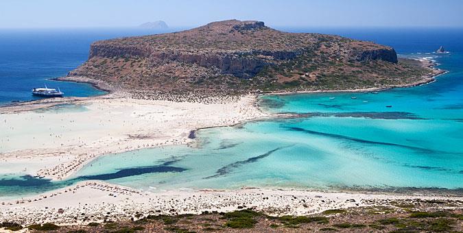 Μπάλος, Κρήτη Η λιμνοθάλασσα του Μπάλου, μαζί με τα νησάκια της Γραμβούσσας, δεν ήταν τυχαία το παράδειγμα στην εισαγωγή μας περί εξωτικών παραλιών εν Ελλάδι: Ρηχά πρασινογάλαζα νερά, απαλή άμμος και αποκλειστική πρόσβαση με καραβάκι από τον Κίσσαμο για έξτρα αίσθηση… Ροβινσώνα –η οποία μειώνεται κατά τι από τα πλήθη που συρρέουν και εδώ.