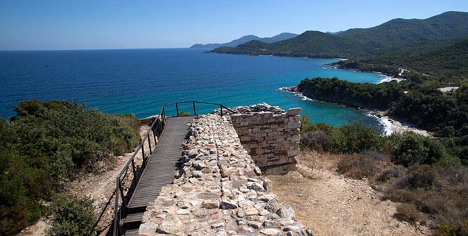 Από τα εντυπωσιακότερα σημεία της αρχαίας πόλης σήμερα, ξεχωρίζουν η πρώιμη κλασική οχύρωση της, η οποία διατηρείται σε εντυπωσιακό βαθμό, η Αγορά με την εντυπωσιακή Στοά των κλασικών χρόνων, ένα αρχαϊκό ιερό, και τα σπίτια κλασικών και ελληνιστικών χρόνων. Για να γυρίσετε ολόκληρη την πόλη, θα υπολογίσετε περί τις δύο ώρες, ενώ highlight κάθε επίσκεψης εδώ είναι αναμφισβήτητα το παραλιακό μονοπάτι, το οποίο κινείται σχεδόν παράλληλα με τα τείχη της πόλης, πλάι στα κρυστάλλινα νερά της Χαλκιδικής.