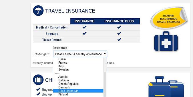 -Στο πλαίσιο «Travel Insurance», αν δεν θέλετε ασφάλεια ταξιδιού, επιλέξτε στην λίστα την επιλογή «Don’t insure me» (βρίσκεται καλά κρυμμένη με αλφαβητικό σειρά, κάτω από την χώρα Denmark). -Στο πλαίσιο «Check-in bags» επιλέξτε αν θέλετε βαλίτσα (πέρα από την δωρεάν χειραποσκευή). Αν δεν θέλετε, συνεχίστε παρακάτω με μηδενική χρέωση. Αν χρειάζεστε βαλίτσα, όμως, πατήστε Add, επιλέξτε το όνομά σας και πόσες βαλίτσες/πόσων κιλών επιθυμείτε. Για κάθε προορισμό, η τιμή αλλάζει. Για παράδειγμα αν θέλετε να πάτε στο Μιλάνο με μια βαλίτσα 15 κιλών, θα χρεωθείτε 15€+15€ (για την πτήση αναχώρησης και επιστροφής αντίστοιχα), ήτοι συνολικά 30€ επιπλέον που θα προστεθούν στο τελικό ποσό στα δεξιά της οθόνης. Για την πτήση Αθήνα-Λονδίνο, οι βαλίτσες είναι ελαφρώς ακριβότερες (συνολικά 40€) και για την Θεσσαλονίκη στα 33,90€. -Στο πλαίσιο “Reserved Seats”, μπορείτε να επιλέξετε από τώρα την θέση σας (περί τα 6€ για μια «συμβατική» θέση και περί τα 11€ για θέση μπροστά, πίσω ή στις εξόδους κινδύνου όπου τα καθίσματα είναι πιο άνετα. Προφανώς, σας συνιστούμε να αγνοήσετε αυτή την επιλογή και απλώς να βρείτε μια οποιαδήποτε θέση κατά την επιβίβασή σας (τα εισιτήρια δεν έχουν αριθμημένες θέσεις). -Στο πλαίσιο «SMS», μπορείτε να επιλέξετε έναντι 1,69€ να σας αποσταλούν με SMS οι πληροφορίες της πτήσης. -Στο πλαίσιο «Transfer» επιλέξτε αν θέλετε να κλείσετε από τώρα το μέσο μεταφοράς σας από το αεροδρόμιο προς την πόλη-προορισμό σας. -Στο πλαίσιο «Sport/musical equipment» επιλέξτε αν θα έχετε ειδικά φορτία (μουσικά όργανα/εξοπλισμό/καρότσι μωρού) που χρεώνονται εξτρά.