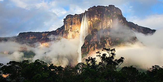 *Καταρράκτες Angel, Βενεζουέλα Γνωστός ως "Angel Falls", ο καταρράκτης της Βενεζουέλας τυχαίνει να είναι και ο ψηλότερος του πλανήτη. Τα νερά του πέφτουν ούτε λίγο ούτε πολύ από τα 979 μέτρα, δημιουργώντας ένα υπερθέαμα, «πνιγμένο» στο νερό και στους καπνούς που κυκλώνουν μυστηριακά το βουνό, που μπορεί κανείς να επισκεφθεί, καθώς αποτελεί μέρος του προστατευμένου από την UNESCO Εθνικού Πάρκου Canaima της Βενεζουέλας. Το όνομά του ο καταρράκτης το οφείλει στον αμερικανό πιλότο Jimmie Angel, που ήταν ο πρώτος άνθρωπος ο οποίος πέταξε πάνω από αυτόν, ανακαλύπτοντάς τον το 1960.