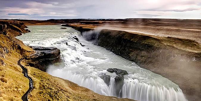 *Καταρράκτες Gullfoss, Ισλανδία Το όνομά τους σημαίνει «Χρυσαφένιοι Καταρράκτες» και βρίσκονται στην νοτιοδυτική Ισλανδία, που προφανώς έχει προικιστεί με ιδιαίτερα φαντασμαγορικό τρόπο από την φύση. Οι Gullfoss δεν εντυπωσιάζουν τόσο λόγω ύψους, αλλά κυρίως εξαιτίας της μεγάλης σχισμής στο έδαφος, που μοιάζει να «καταπίνει» τον ποταμό Hvita και τα νερά του να χάνονται στην άβυσσο.