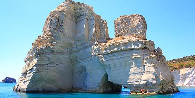 Κλέφτικο, Μήλος Γνωστή και ως «Θαλασσινά Μετέωρα», η εν λόγω παραλία (αν μπορεί κανείς να την χαρακτηρίσει έτσι) είναι προσβάσιμη μόνο με καραβάκι, ενώ διαθέτει κρυστάλλινα γαλαζοπράσινα νερά τα οποία σε προκαλούν για βουτιές από τους ψηλούς της βραχώδεις σχηματισμούς.
