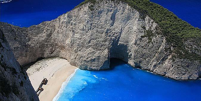 Ναυάγιο, Ζάκυνθος Ναι, είναι υπέρ-προβεβλημένο, υπέρ-τουριστικό και υπέρ-κλισέ. Αλλά δικαίως: γιατί το χρώμα των νερών του είναι εξωπραγματικά τιρκουάζ, η άμμος του κατάλευκη και οι θεόρατοι βράχοι που το περικλείουν σχεδόν απόκοσμοι.