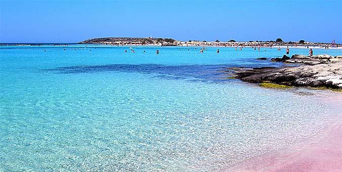 Ελαφονήσι, Κρήτη Πιθανότατα τα πιο ρηχά και πιο ζεστά νερά που θα βρείτε σε παραλία εντός ελληνικών συνόρων. Έξτρα πόντους κερδίζει για το απλώς εξωπραγματικό τοπίο, την ροζ άμμο, το τιρκουάζ χρώμα των νερών και τις υδάτινες βόλτες (περπατάτε μέσα στο νερό, που δεν φτάνει πάνω από το γόνατο) μέχρι τους ολόλευκους αμμόλοφους στο νησάκι απέναντι –που δεν απέχει παραπάνω από πενήντα μέτρα από την παραλία.