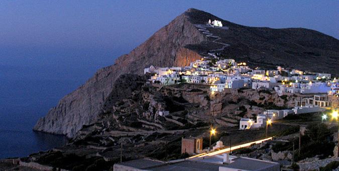 Κίμωλος (φωτο: Cycladesliving.gr) Άλλη μία περίπτωση νησιού που ονομάζει «Χωριό» την Χώρα της, η Κίμωλος ποντάρει στην απλότητα και ντύνει την λιτή κι απέριττη πρωτεύουσά της με λίγα λευκά σπιτάκια, παλιούς αμεμόμυλους, γαϊδουράκια και δρομάκια με ασβεστωμένα σχήματα καρδιών και πεταλούδων, που συνθέτουν το σκηνικό μίας από τις πιο ακατέργαστες Κυκλάδες. Φυσικά, τα αυτοκίνητα μένουν έξω από το Χωριό, για να μη διαταράσσουν την ησυχία των στενών καλντεριμιών με τα μικρομάγαζα και τους φιλόξενους ντόπιους. Στην κορυφή, δεν λείπει το μεσαιωνικό κάστρο του 13ου αιώνα, τα τείχη του οποίου χωρίζουν την περιοχή σε δύο γειτονιές, το Μέσα και το Έξω Κάστρο. Περισσότερα για την Κίμωλο: Εδώ
