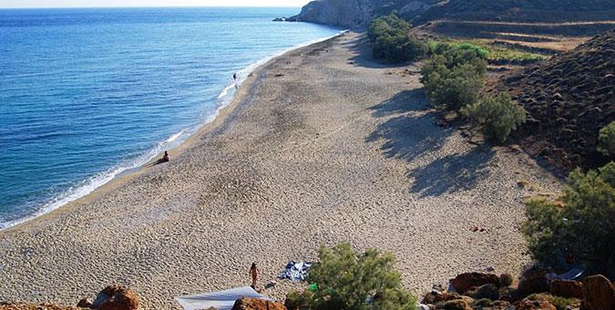 Καράβι και Λια, Σέριφος Αλίμονο αν το Κυκλαδονήσι με τις 72 (!) παραλίες δεν είχε και δύο «επίσημες» παραλίες γυμνιστών. Η πρώτη σας επιλογή εδώ είναι το Καράβι, στα νότια του νησιού, πολύ κοντά στο Λιβάδι. Πρόκειται για μια ωραιότατη αμμουδιά, με φυσική σκιά από τα αλμυρίκια και πλάκες μέσα στο νερό. Κι έπειτα, υπάρχει και η φημισμένη Λια (φωτό, επάνω), στα νοτιοανατολικά του νησιού, στην οποία θα φτάσετε περπατώντας για ένα 20λεπτο περίπου (ο δρόμος είναι ασφαλτοστρωμένος μέχρι ένα σημείο, μετά γίνεται χωματόδρομος για 500 μέτρα και εν συνεχεία μονοπάτι). Εδώ θα βρείτε άμμο και ψιλό βοτσαλάκι, και φυσική σκιά από αλμυρίκια.