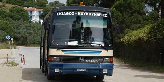 Σκιάθος Η δημοφιλέστερη των Σποράδων έχει το δικό της… υπέργειο μετρό. Με αφετηρία το Πάρκο Δημοτικού Σχολίου στην πόλη της Σκιάθου, ξεκινούν λεωφορεία που κινούνται σε τρεις διαφορετικές γραμμές: Την πράσινη γραμμή, που πηγαίνει ως την Μονή Ευαγγελίστριας στα βόρεια, την μπλε γραμμή, που περνά από το αεροδρόμιο και φτάνει ως τον Ξάνεμο στα ανατολικά του νησιού, και την κόκκινη γραμμή, που περνά από όλα τα νότια παράλια (Βασιλιάς, Σκληθρί, Αγία Παρασκευή,Τρούλος και άλλες 18 ενδιάμεσες στάσεις) μέχρι να φτάσει στις περίφημες Κουκουναριές, στην άλλη άκρη της Σκιάθου. Η συχνότητα των δρομολογίων της κόκκινης γραμμής είναι ανά 15 λεπτά, από τις 7.00 το πρωί μέχρι τη 1.30 τα ξημερώματα. Δείτε τα δρομολόγια εδώ.