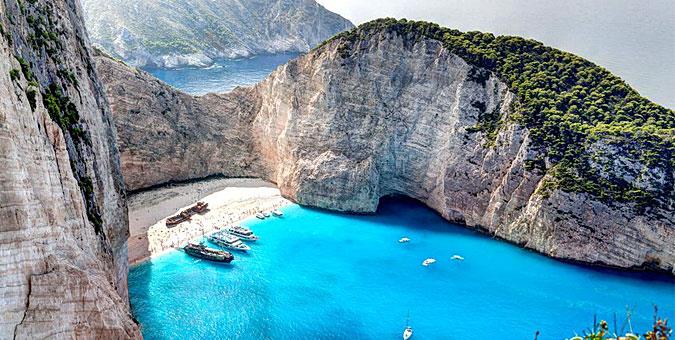 Ναυάγιο, Ζάκυνθος Ξεχωρίζει: Για το ναυαγισμένο πλοιάριο στην αμμουδιά Είναι ίσως η διασημότερη και πιο πολυφωτογραφημένη παραλία της Ελλάδας. Και υπάρχει λόγος γι’ αυτό: Διαθέτει τα πιο τιρκουάζ νερά που έχετε δει, τα οποία «ξέβρασαν» εκεί το πασίγνωστο ναυαγισμένο πλοίο που της έδωσε το όνομά της. Πρόκειται για το πλοίο «Παναγιώτης» που κουβαλούσε λαθραία τσιγάρα όταν μια καταιγίδα το έριξε στα βράχια της Ζακύνθου.