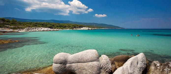 Νερά… να τα πιεις στο ποτήρι, βραχώδεις ορμίσκοι και βλάστηση που φτάνει μέχρι τη θάλασσα στην απόλυτη «σταρ» της Χαλκιδικής. Για τους λάτρεις του γυμνισμού, διαθέτει ένα μικρό "καταφύγιο" στον προστατευμένο κολπίσκο τους.