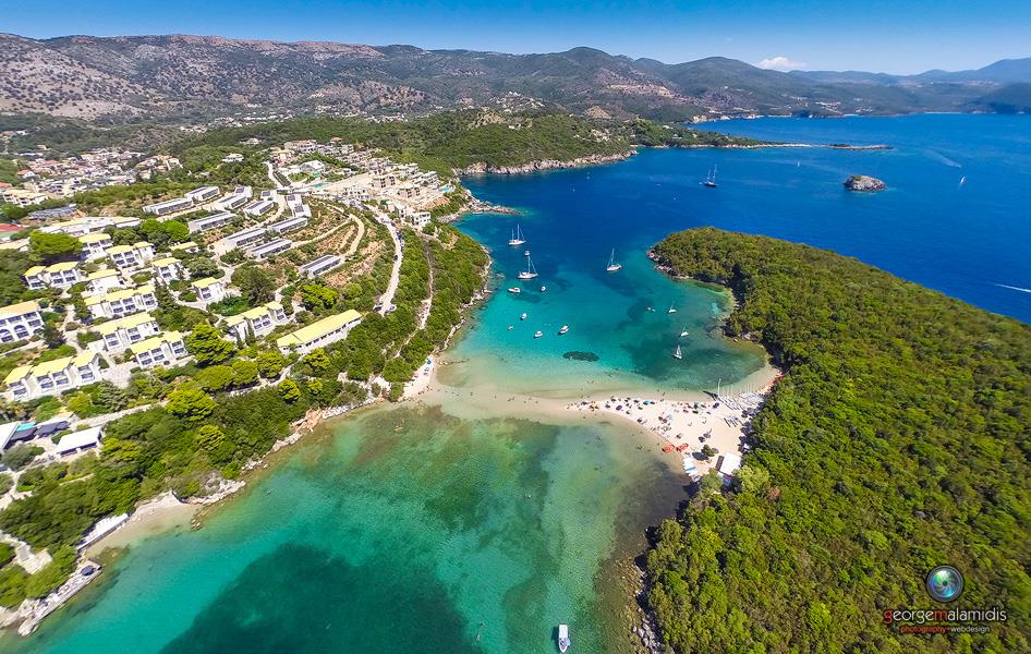 Δεν είναι μία, αλλά δύο παραλίες που σχεδόν θα ακουμπούσαν μεταξύ τους, αν δεν τις χώριζε μια στενή, απόλυτα τιρκουάζ λωρίδα θάλασσας. Η μία βρίσκεται στο ηπειρωτικό κομμάτι, λίγο έξω από το χωριό Σύβοτα, και η άλλη είναι η παραλία του μικρού νησιού που ακούει στο όνομα Μουρτεμένο.