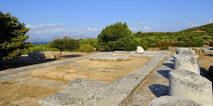 Στο λόφο που υψώνεται πάνω από την παραλία, βρίσκονται τα απομεινάρια δύο αρχαίων ναών, της Αθηνάς και του Απόλλωνα, και τα τείχη της αρχαίας Ακρόπολης, με τη φαντασμαγορική τους θέα στη θάλασσα.