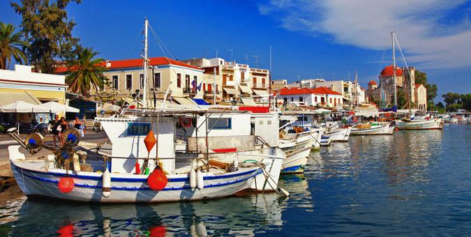 Αίγινα Είναι δίπλα (μόλις μία ώρα κι ένα τέταρτο από το λιμάνι του Πειραιά), έχει συμπαθητικές παραλίες και όμορφο λιμάνι για απογευματινές περαντζάδες, καλές προτάσεις για φαγητό, και πολλά ferry boat και flying dolphin να πηγαινοέρχονται όλη μέρα, από τις 7.00 το πρωί έως τις 22.30 το βράδυ. Το εισιτήριο του πλοίου δεν ξεπερνά τα 9,50€ ενώ τα ποδήλατά σας μεταφέρονται δωρεάν –τόσο στο πλοίο, όσο και στα βαγόνια του ΗΣΑΠ για Πειραιά.
