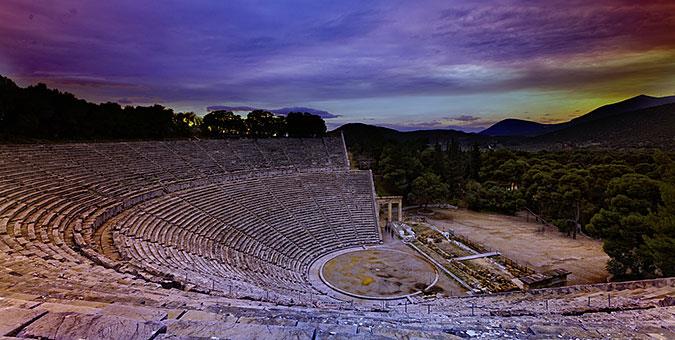 Το φως του ηλιοβασιλέματος λούζει αυτό που στα μάτια μας είναι το επιβλητικότερο αρχαίο θέατρο του κόσμου. Η μυρωδιά των πεύκων και οι φωνές των τζιτζικιών ανακατεύονται με τις κουβέντες μερικών χιλιάδων θεατών που ανηφορίζουν το πλακόστρωτο μονοπάτι μισο-ασθμαίνοντας από τον καύσωνα. Στις παύσεις ανάμεσα στους διαλόγους της παράστασης ακούγονται τριζόνια. Και κάθε φορά που πέφτει ένα αστέρι, κινδυνεύεις να αφαιρεθείς και να χάσεις λίγη από την εξέλιξη της σκηνής. Αλλά δε σε πειράζει.