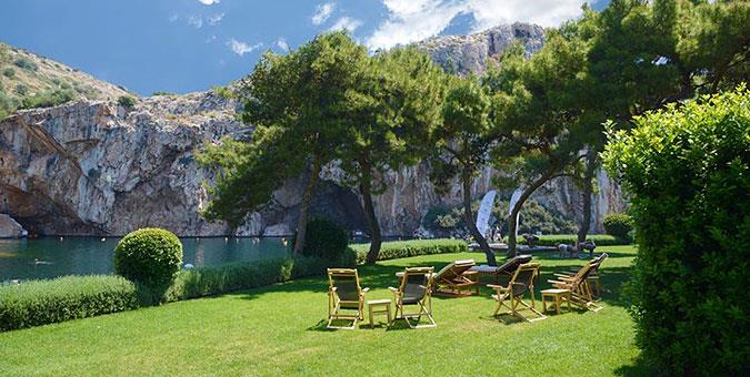 Μια υπέροχη λίμνη, απόκοσμα βράχια, δροσιά στην σκιά δέντρων και βουτιές με φόντο σπήλαια είναι το σκηνικό που θα συναντήσετε σχεδόν δίπλα στη θάλασσα της Βουλιαγμένης, στην καρδιά της αθηναϊκής ριβιέρας. Στην υφάλμυρη Λίμνη της Βουλιαγμένης έχει διαμορφωθεί ένας πολύ ενδιαφέρων χώρος με café, εγκαταστάσεις για βουτιές σε φυσικά… spa, δραστηριότητες για φυσιολάτρες και αθλητές, αλλά και οικογενειακές εξερευνήσεις στην φύση και στο σπάνιο γεωλογικό τοπίο της περιοχής. Ο χώρος διαθέτει ξαπλώστρες, ομπρέλες, ναυαγοσωστική και ιατρική κάλυψη, παιδότοπο και bar restaurants. Λειτουργεί καθημερινά 7.00-21.00 και η είσοδος στοιχίζει 10€ τις καθημερινές ή 11€ τα σαββατοκύριακα (περιλαμβανομένης ξαπλώστρας) και για τα παιδιά 5,50€.
