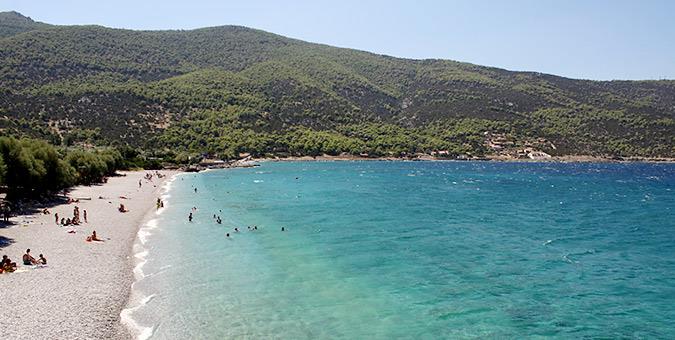 Πόρτο Γερμενό Από τις πέντε παραλίες που παρατάσσονται στη σειρά στο αγαπημένο των οικογενειών Πόρτο Γερμενό, εκείνη που διαθέτει την περισσότερη σκιά είναι αυτή που αποκαλείται εύγλωττα μεσαία παραλία. Είναι βοτσαλωτή και σκιερή χάρη στα αρμυρίκια της, δεν ενδείκνυται όμως για οικογένειες με πιτσιρίκια, καθότι βαθαίνει πολύ απότομα.