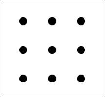 Ένα από τα πρώτα οπτικά ερεθίσματα που καθιέρωσαν την χρήση της φράσης είναι ο παρακάτω γρίφος που λέγεται ότι πρωτοχρησιμοποιήθηκε από τους ιθύνοντες της Walt Disney για να ελέγξουν την φαντασία των εργαζομένων. Υπάρχουν λοιπόν 9 κουκίδες που σχηματίζουν ένα τετράγωνο. Το quiz καλεί τους λύτες να ενώσουν και τις 9 κουκίδες, τραβώντας το πολύ τέσσερις ευθείες γραμμές, χωρίς να σηκώσουν καθόλου την μύτη του μολυβιού και χωρίς να περάσουν πάνω από την ίδια κουκίδα περισσότερες από μία φορές. Μόνο όσοι σκέφτονται «έξω από το κουτί» και βλέπουν τις πιθανότητες έξω από το τετράγωνο μπορούν να λύσουν αυτό το quiz (για όσους βιάζονται,