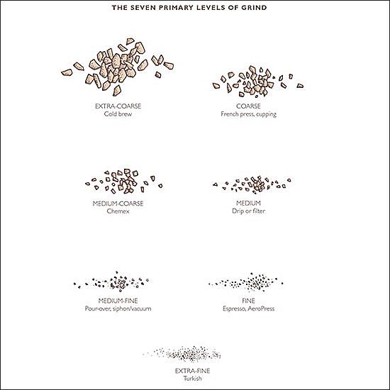 Ανάλογα με το είδος καφέ που θέλετε, θα επιλέξετε και το κατάλληλο είδος άλεσης από τον ειδικό διακόπτη της μηχανής. Δείτε στην παρακάτω φωτογραφία τα είδη άλεσης ανάλογα με το τι καφέ θέλετε να φτιάξετε.