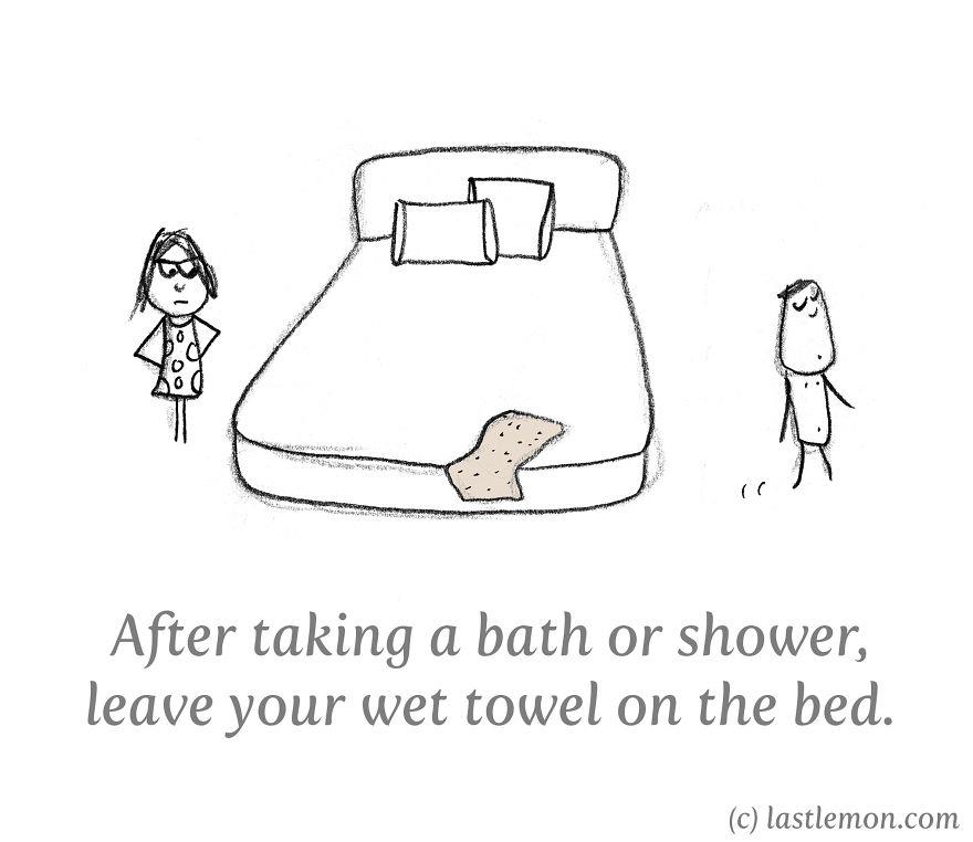 Κάντε θόρυβο όταν τρώτε Μη χρησιμοποιείτε σημεία στίξης Μιλήστε μωρουδίστικα Ανοιγοκλείστε το στιλό όσο πιο πολλές φορές μπορείτε Αφήστε τη βρεγμένη πετσέτα στο κρεβάτι μετά το μπάνιο Κλείστε το φως ενώ κάποιος βρίσκεται μέσα στο δωμάτιο
