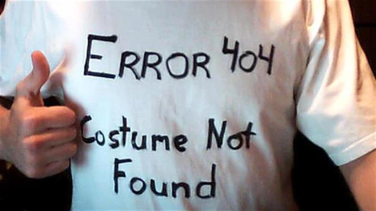 Error 404: Η στολή που ψάχνετε δεν βρέθηκε. Λύση τελευταίας στιγμής για όποιον δεν έχει τίποτα να διαθέσει πέρα από μια λευκή μπλούζα στο μπροστινό μέρος της οποίας θα γράψετε το λαοφιλές μήνυμα.