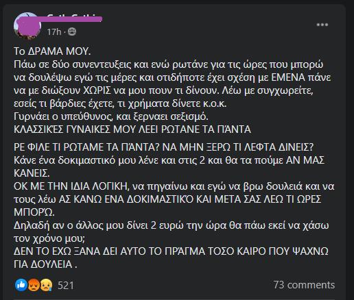 Είναι από μόνο του εντυπωσιακό το γεγονός ότι στο γκρουπ ανεβαίνουν κάθε μέρα πολλές εξομολογήσεις∙ κι υπάρχουν πολλές που «κόβονται» από τους διαχειριστές. Οι δημοσιεύσεις αστείες μεν, σοκαριστικές δε, σε προβληματίζουν για την εργασιακή πραγματικότητα στην Ελλάδα και εν γένει για τη νοοτροπία του Έλληνα.