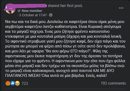 Πρώτα από όλα να πούμε τι είναι το Τμήμα Προσωπικού Δράματος. Πρόκειται για ένα γκρουπ στο facebook με 197 χιλιάδες μέλη, το οποίο είναι ένα «ασφαλές μέρος» για να μοιραστεί τον προσωπικό γολγοθά που ζει ο κάθε εργαζόμενος στη δουλειά και, ενίοτε, τον πόνο τους οι πελάτες.